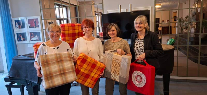 Gut, dass 2 der 4 Freiwilligen etwas mehr Erfahrung beim Nähen hatten. So wurde die Arbeit gut verteilt. Eine erledigte das Zuschneiden, eine andere das Aufbügeln der Stoffe und der Rest war beschäftigt mit Hilfsarbeiten. Leise Musik und lustige Gespräche begleiteten die Näharbeiten. Bei diesem Einsatz wurden 7 Kissenbezüge genäht. Hinzu kamen 3 Stück, die zur Probe davor entstanden. Nun können sich die kleinen Theaterbesucher über 10 neue Kissen freuen.