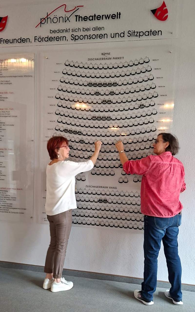 Um unser Theater finanziell zu unterstützen, kann man Sitzpatenschaften erwerben. Die Sitzpaten werden auf dem Saalplan genannt. Ziel dieser Aktion ist die Aktualisierung dieser Ehrentafel.